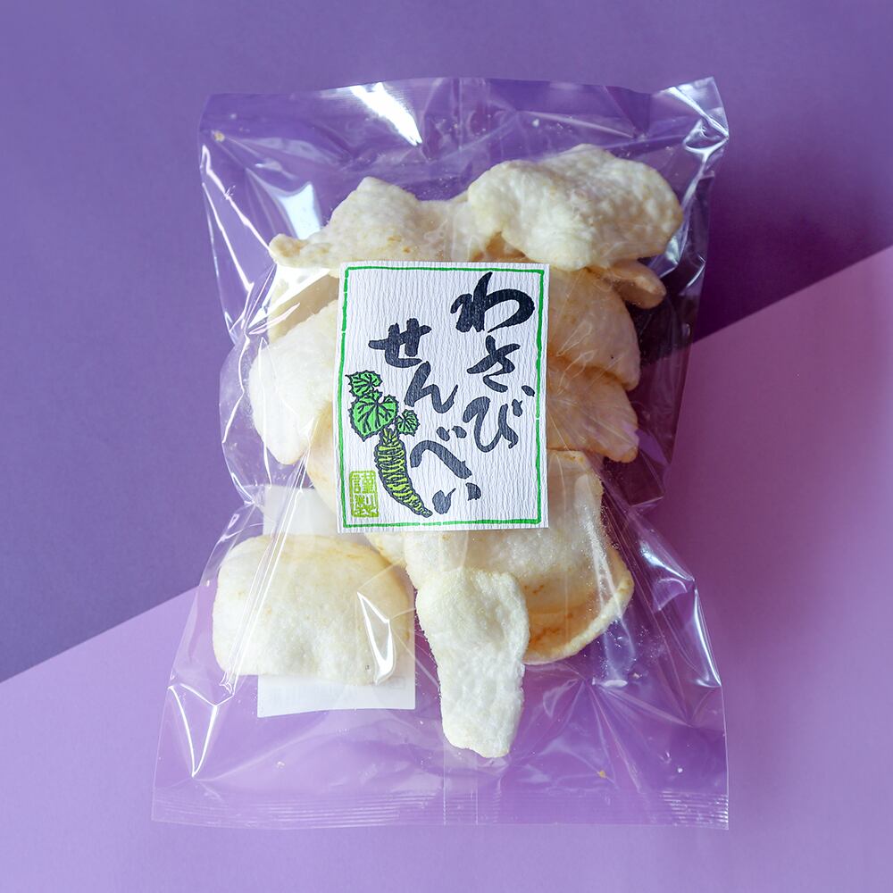ふわふわの揚げせんべい。わさび醤油の味わい。