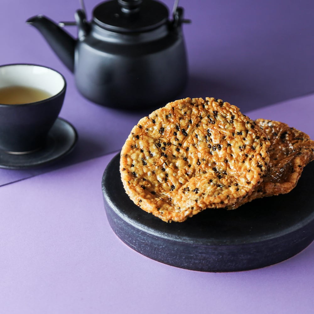 直径約12 cmほどの大きい揚げせんべい。食べ応えがあります。