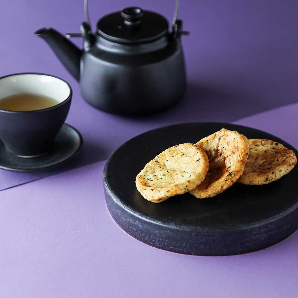 アオサ海苔と甘めの醤油だれで仕上げた揚げせんべいです。
